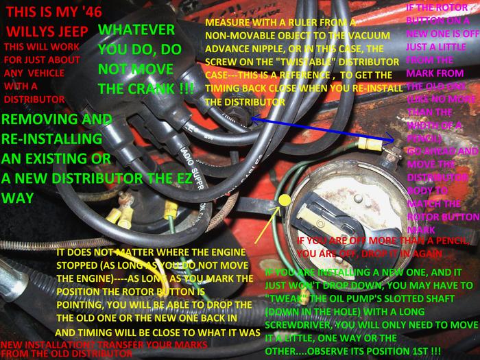 IF YOU WANNA DO IT THE EZ WAY---DO NOT REMOVE THE DISTRIBUTOR OR EVEN MOVE IT......TILL YOU GET INSTRUCTIONS
