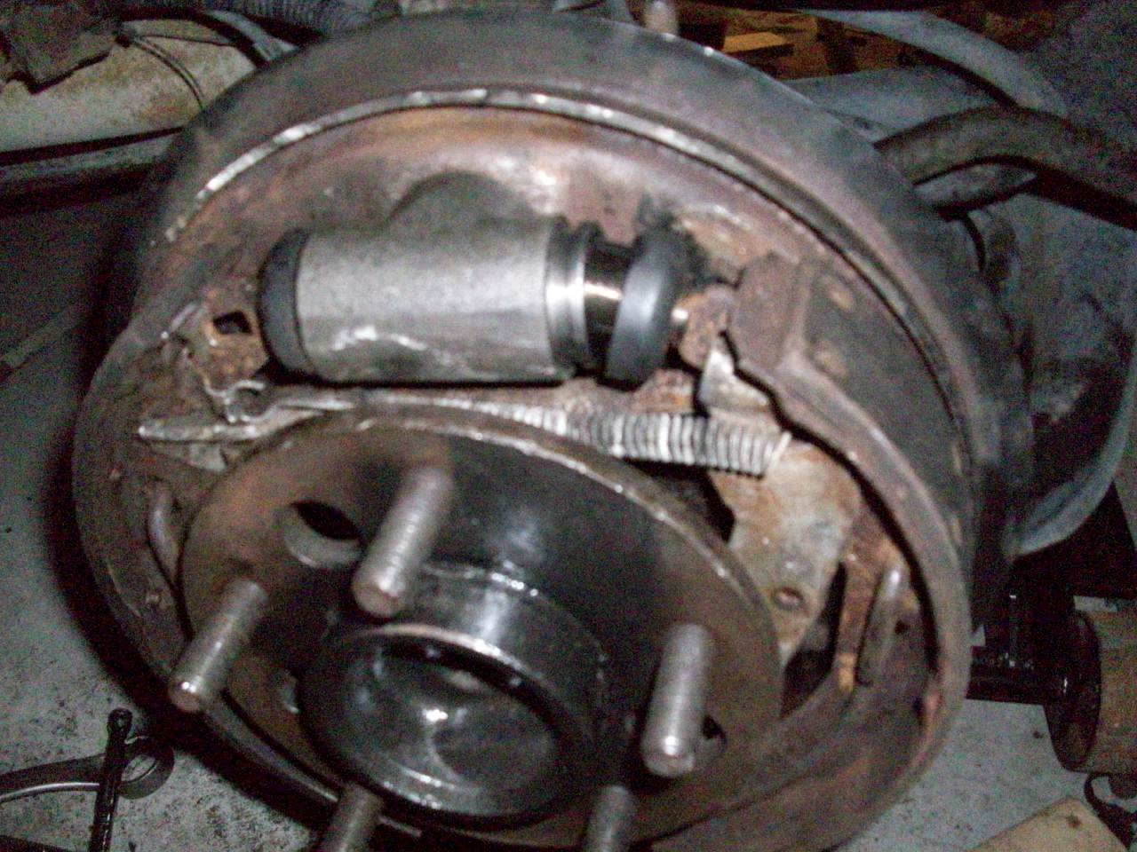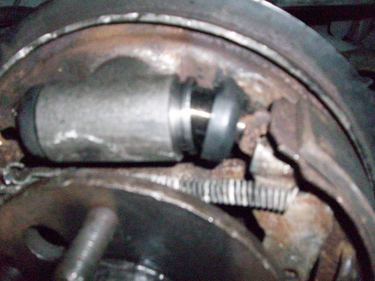 The shoes hold the pistons in too. If you were pedal-bleeding, the pressurized break fluid is what pushed the shoe and piston out if the drum was off. Still, no harm done. If no brake fluid ran out, the lip seal isn't out far enough to cause a worry. That's what it appears in the pictures. Just push the piston back in and pop the dust boot back in place. This is less likely to happen with an old wheel cylinder because rust forms on it that "glues" the dust boot in place.