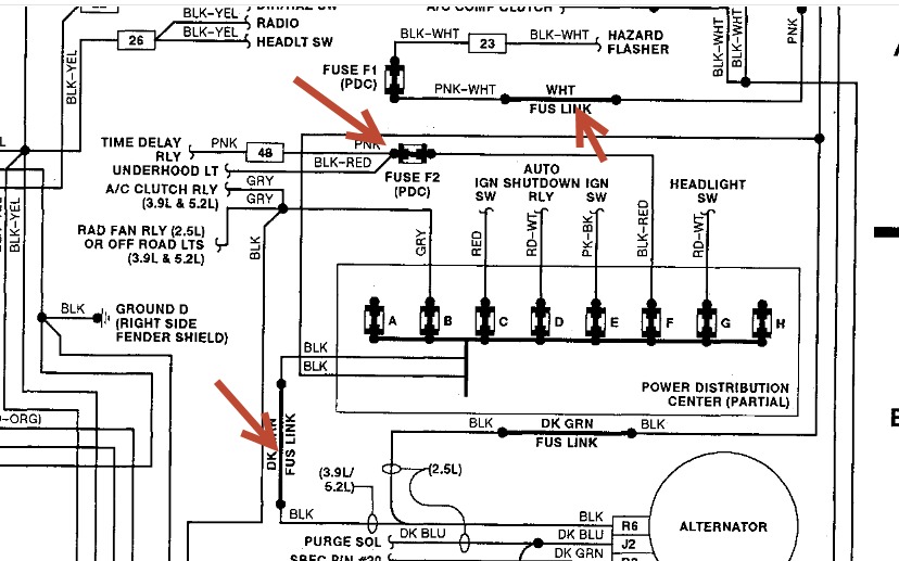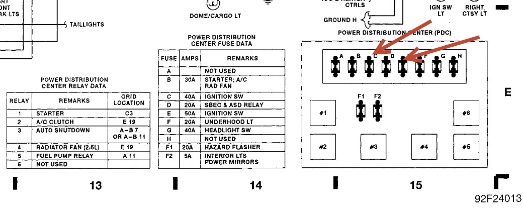 check your fuel pressure first, or spray some choke cleaner into engeine and see if it starts. you only need the key on to get fuel should be 39 psicheck your auto shutdown relay by switch ing a like relay fuse 13 comes form headlights and grounds on other side of fuse so check for a blown fuse there it is the tan wire leading from headlight switch