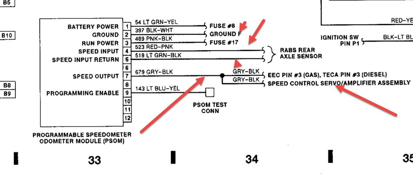 I verified I had power and increasing signal to psom, so I replaced with used speedometer. Now the speedometer and odometer are working, but idle and shifting is still the same. I also notice a clicking sound coming from behind passenger side firewall and a occasional pull to the right while driving. Could it be the 4wabs module? What else could cause symptoms? I also notice there is no horn. I have checked fuses. Can a mechanic with obd1 see where the problem is? Is it rare to find someone who has one? I asked one mechanic and they have nothing for later than 96.