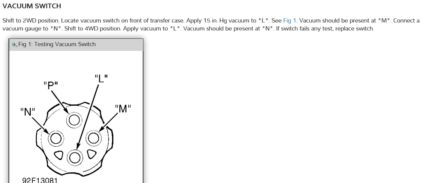 your last reply talks about the axle not tcase the actuator under battery supplies vacuum to switch on tcase. that is why I sent previous pic to see if you are getting vacuum and if the switch is working or not it tells how to test i.