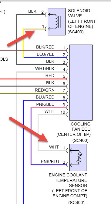 other ideas because after I read what you had checked you didn't say anything about that so I kind of figured that was the problem. I just checked wiring for radio which there are two fuses one fuse is inside car and powers radio , antenna etc. the ground is at rh center of dash. just for the hell of it you might try jumping the two items in pic and see if it makes a difference. one is temp sensor and those can do all kinds of screwy things. they both go to the cooling fan ecu and may be the problem, might be the wrong direction but worth a try and doesn't take very long.