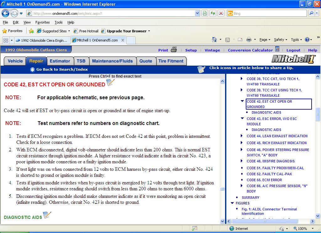 1992 Oldsmobile Cierra ECM code 42