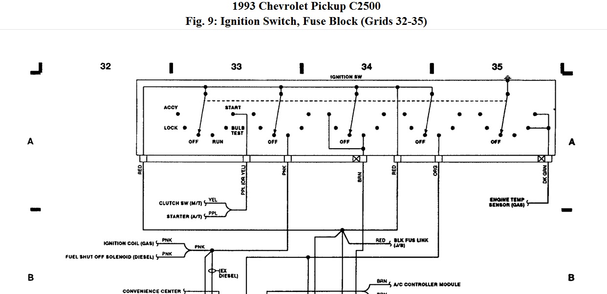 Below is the wiring diagram for ignition switch. Red wire is feed to ignition switch, hot all the time, come from fusible link.