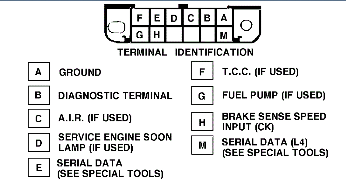 Removing battery voltage to ECM terminal "R" for a period of 10 seconds will clear all stored trouble codes. This usually can be accomplished by removing the ECM fuse, if equipped, from the fuse block. In some cases it may be easier to disconnect the negative battery terminal. However, doing so will result in deprogrammed ETR radios, electronic clocks and Trip Computers.