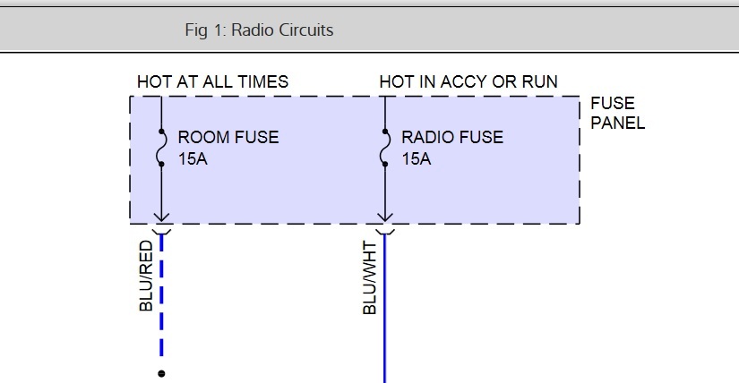 Note the fuses in diagram. The radio fuse goes hot with the key on. This is supposed to be factory wiring, I don't have access to anything else. If your aftermarket radio is wired differently, I don't know to help except to check voltage and ground.