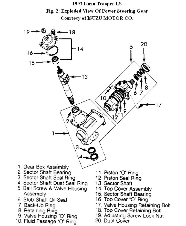 First you would need to check the steering linkages, control arms and wheel bearing for excessive play and rectify if any found. If the excessive play is only within the steering gear, adjustment can be made. Item #19 in diagram shows the locknut for the adjustment screw.