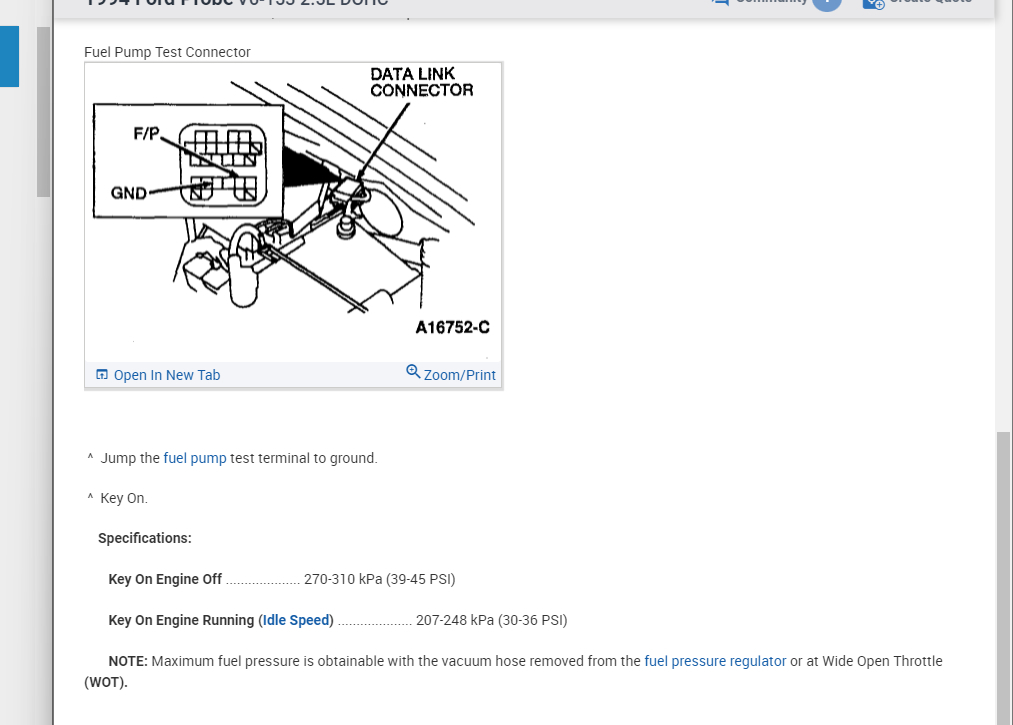 I am attaching the info below on how to test the fuel pressure for this vehicle.
