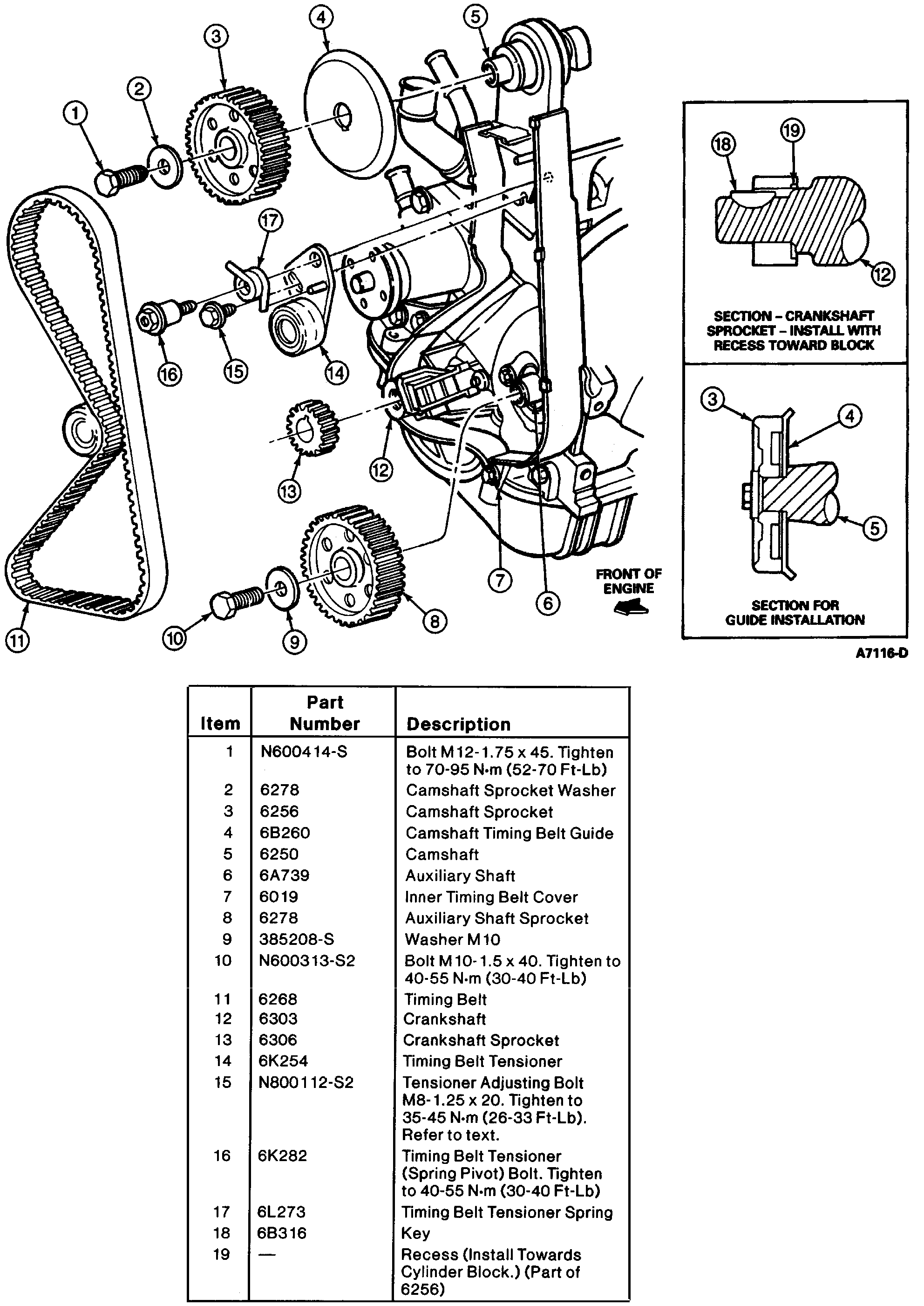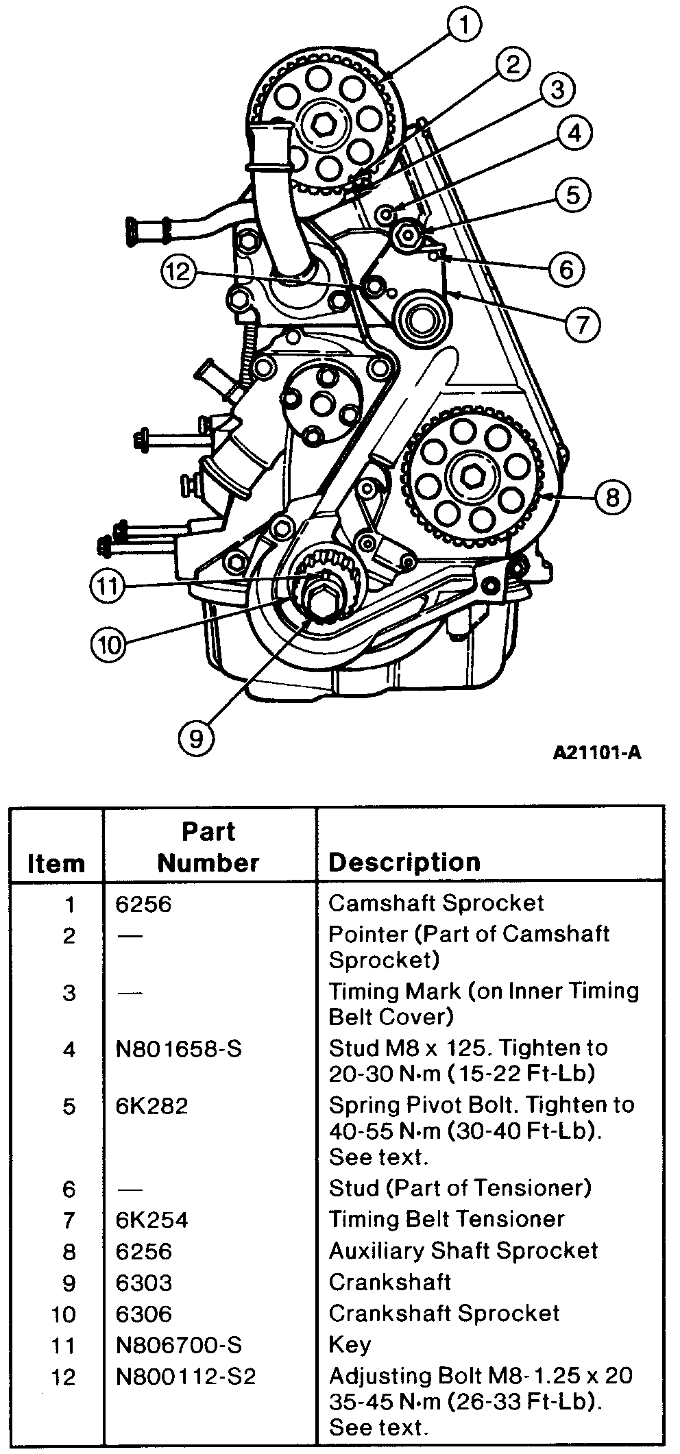 7. Loosen tensioner adjusting bolt allowing tensioner pulley to press against timing belt.