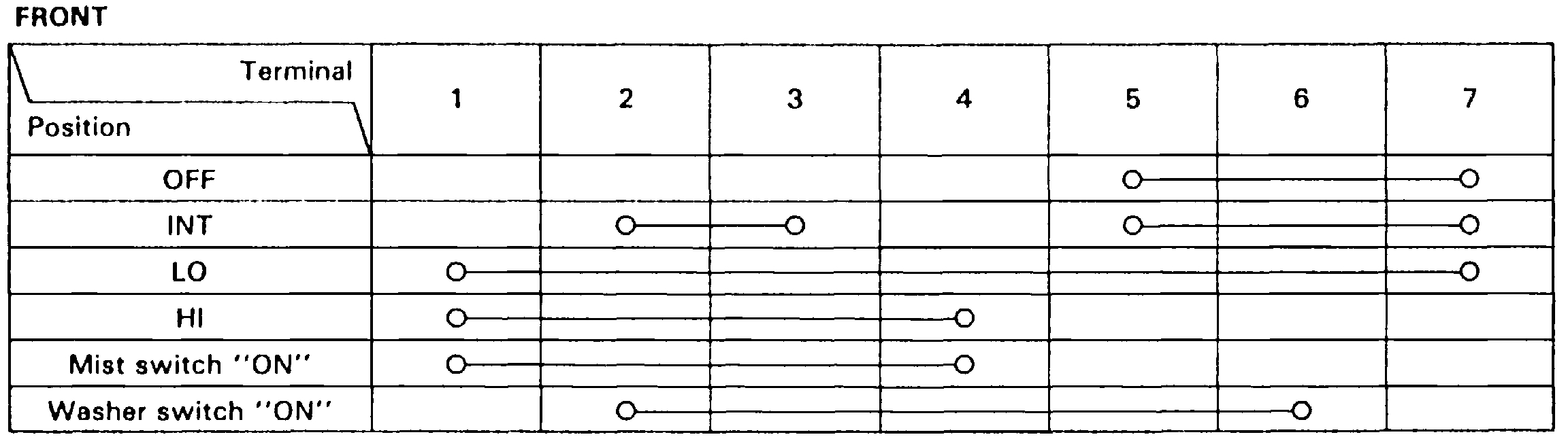 Fig. 6 Wiper/Washer Switch Continuity Chart