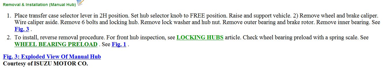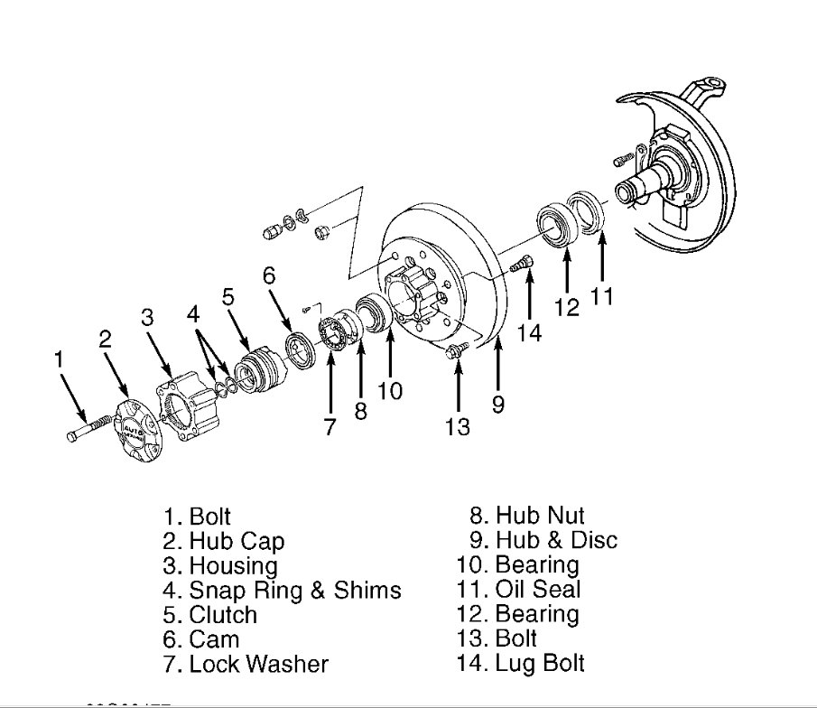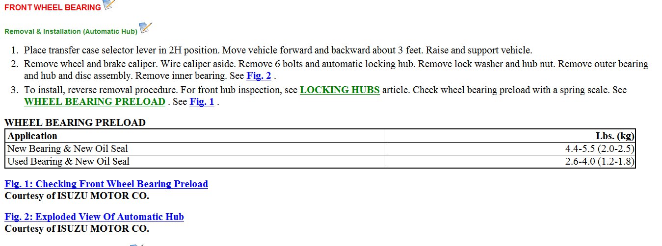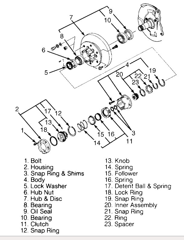 I am attaching instructions for both automatic and maual locking hubs. There are instructions and diagrams for removing and replacing the wheel bearings.