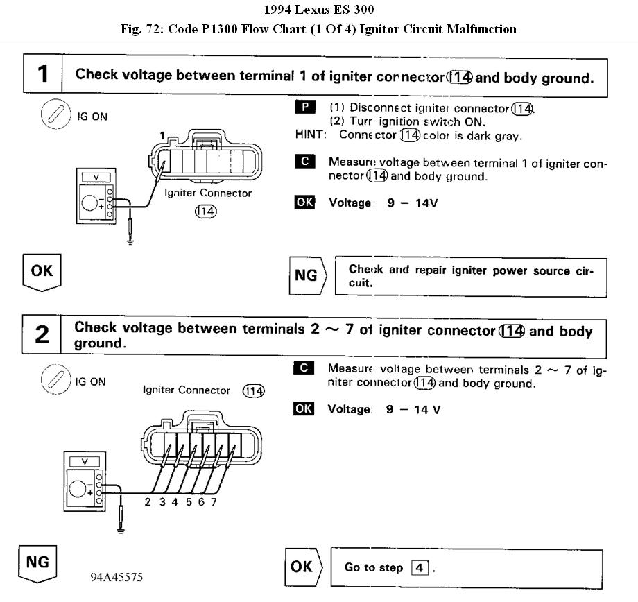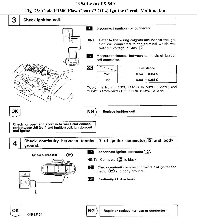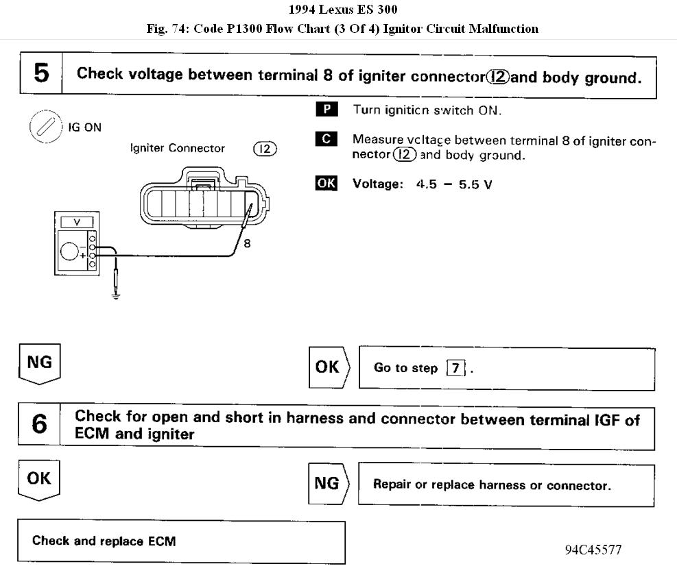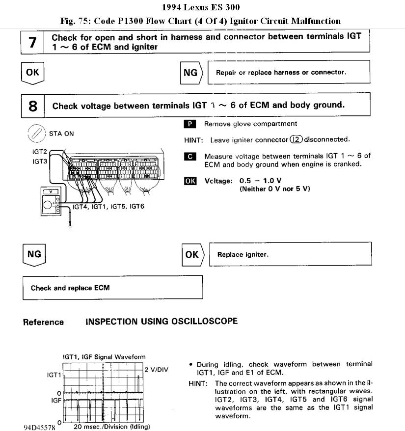 i have a lexus es 300 1994 and a p1300 code keeps poppin up the car runs great i changed out the ignitor thats what the p1300 code is and it is still doing the same thing the car runs if u reset the code and it cools down but after about ten of fifteen min it dies. there r not cut wires nothing anyone has rigged up i have cleaned all the grounds on the car i dont know what else to do would u think this may b a computer problem i have owned the car for about two months and this just started happening