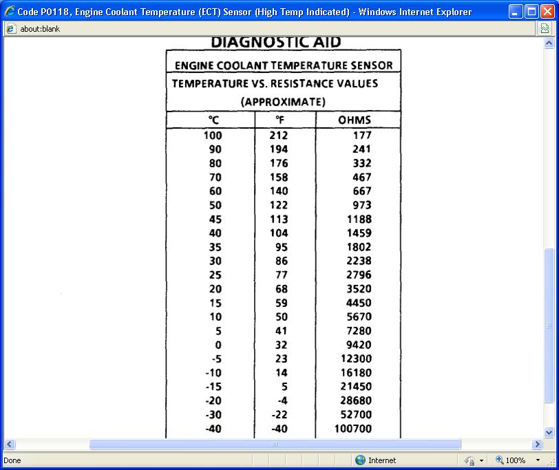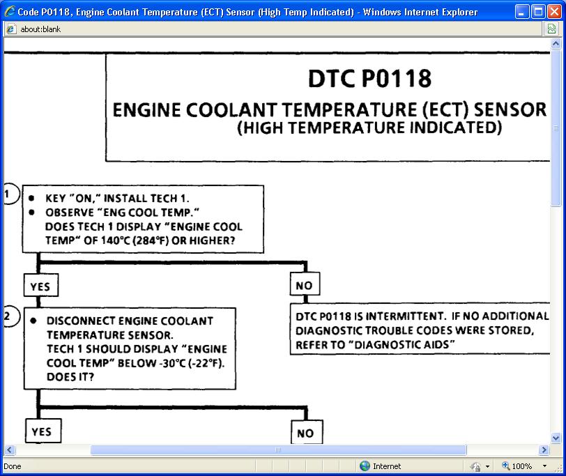 Code P0118, Engine Coolant Temperature (ECT) Sensor (High Temp Indicated)