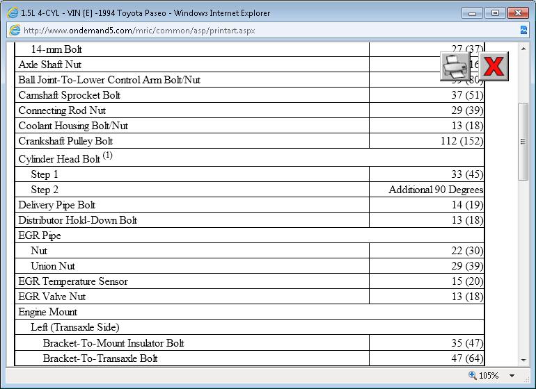 What is the torque pattern and poundage for the head bolts in a 1994 toyota paseo 1.5 cyl 5efe?