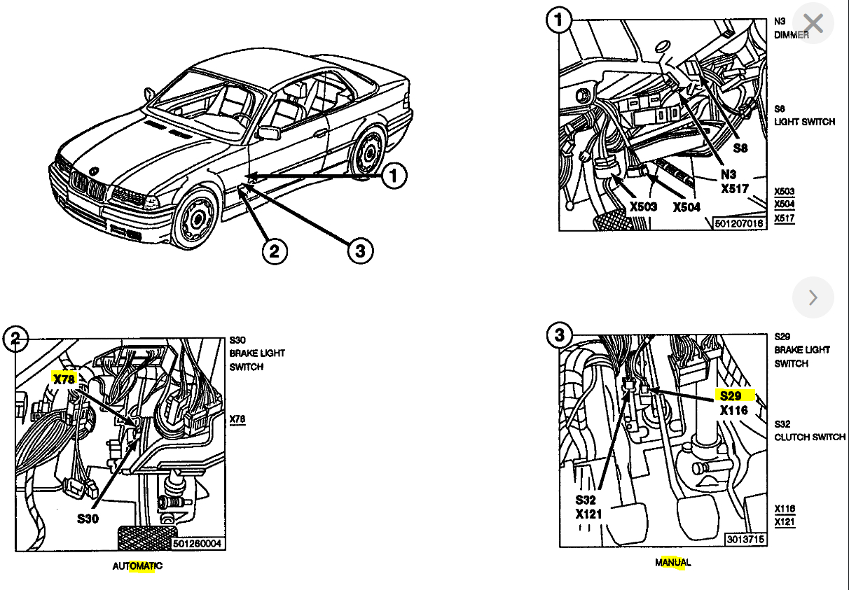 The brake light switch is located behind the brake pedal and when the brake gets depressed the switch gets pushed, which triggers the brake light.