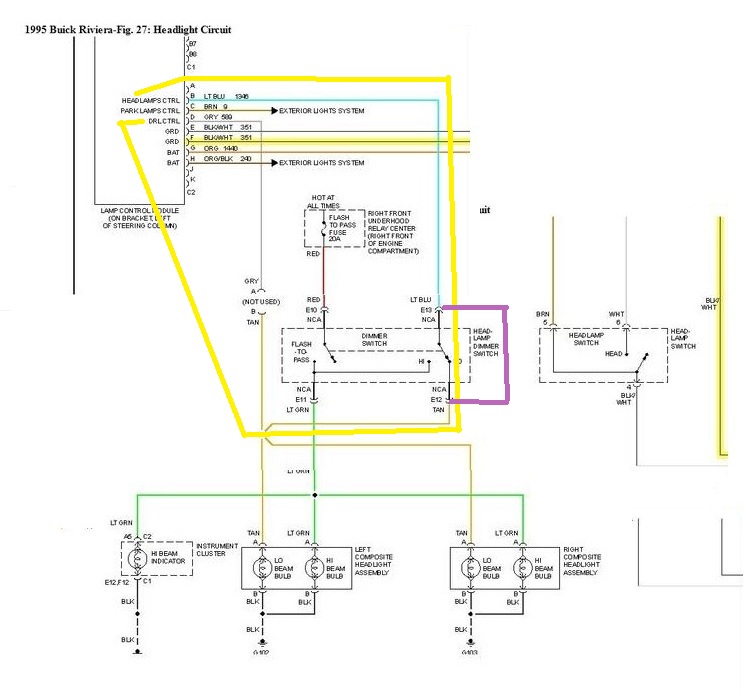 I was wondering if I could get the wiring diagram for the headlights to the headlight switch in the car? I can't find one anywhere.