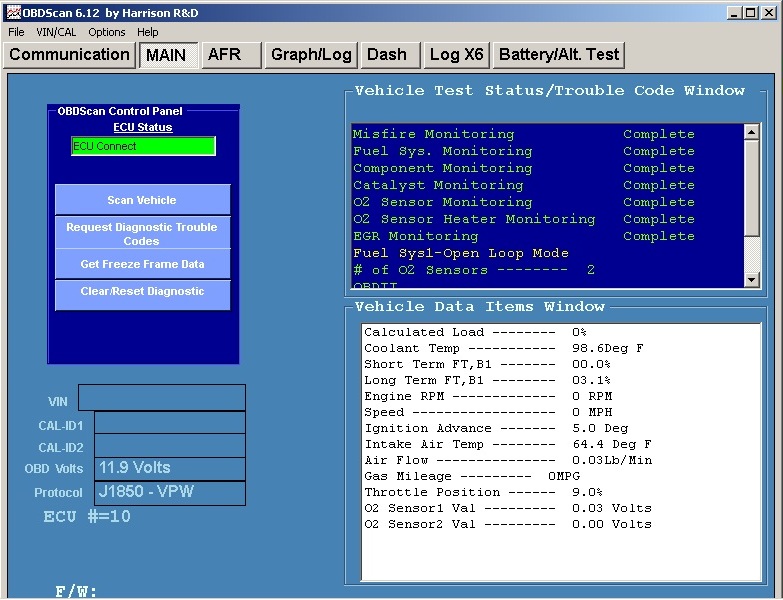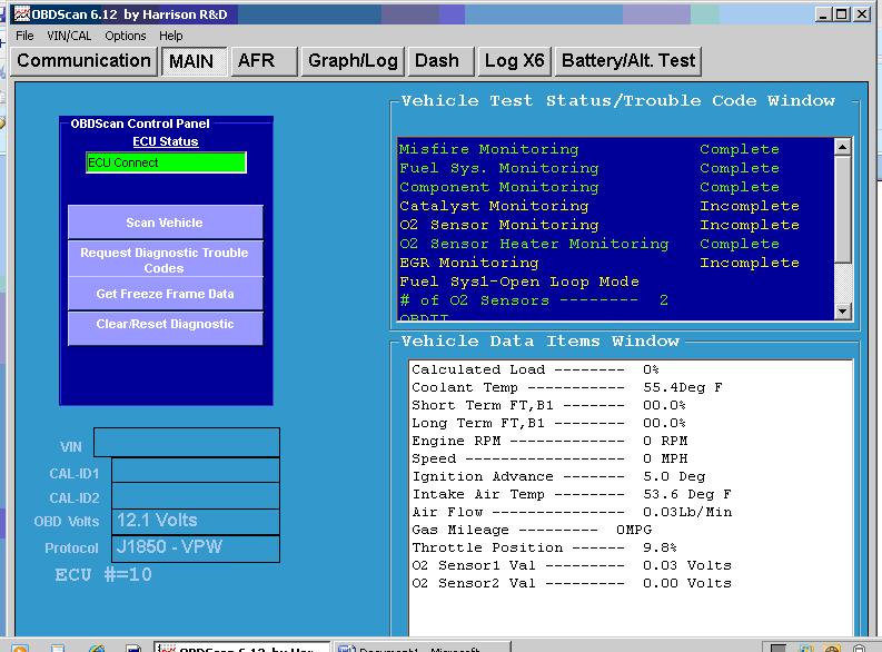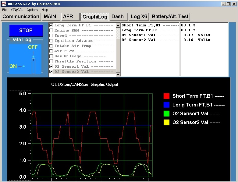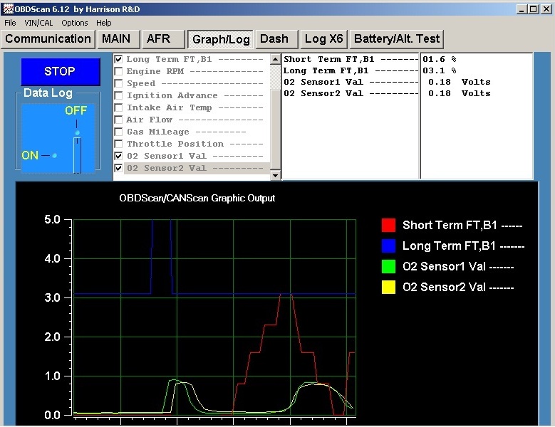 Placing the vehicle in gear on jacks, I somehow managed to get the ECU to go into closed loop fuel control and both fuel trims marched up to their maximum values with the OX sensors continuing to measure constant lean condition.
