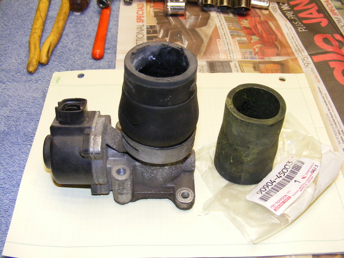 The catalytic converters and the exhaust gas seemed very hot, so on a hunch, I disconnected the ISC connector and powered the ISC valve closed by directly connecting +12v to the ISC valve +B pin 2 and grounding the RSC pin 3, the engine immediately died from the rough idle. This indicated to me that there was no air leak, otherwise the engine would have sped up from the improved air fuel ratio. I confirmed that the engine was running very rich by opening the ISC valve (connecting +12v to the ISC valve +B pin 2 and grounding the RSO pin 1). The engine immediately sped up and began running smoothly at a high idle speed. The rich mixture was also confirmed by placing a cotton rag over the exhaust pipe during rough idle for 5 seconds and the hot exhaust gas (very hot from the extra gasoline delivered to the catalytic converters) ignited the rag.