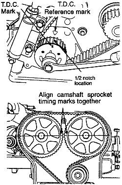 My car (1996 Dodge Avenger 2.0L) jumped time on me one day (of course so it's now my fault lol) we have the new timing belt and have a book but we have it put away in storage (of course...again) an we desperately needing a diagram to show where the timing marks should be when he puts the belt on. He tells me that there are 3 important parts that need to be in that one special position sooo...it is late and my husband is just trying to get us mobile again so any help is greatly appreciated