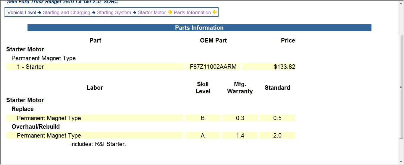 what is the average price to get a starter replaced at a repair shop for 1996 ford ranger