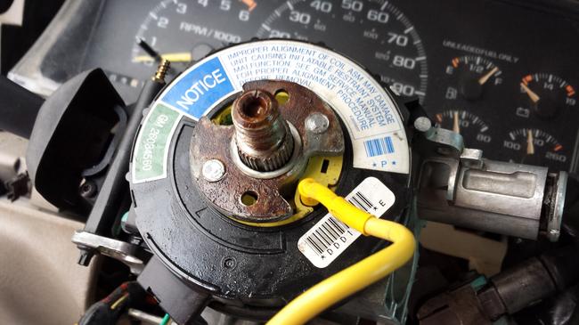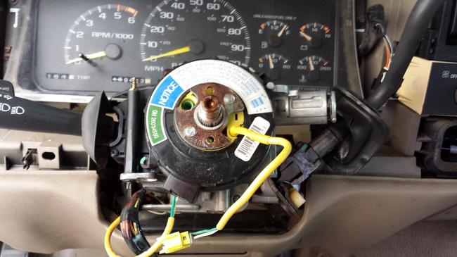 I have a 1996 sierra and the key cylinder got stuck it won't even turn. So I decided to go ahead and remove the key cylinder housing,, I've already taken the airbag and steering wheel off, but then I hit some a part that i don't know how to remove, I took some pictures,, hope somebody can help me.... thanks