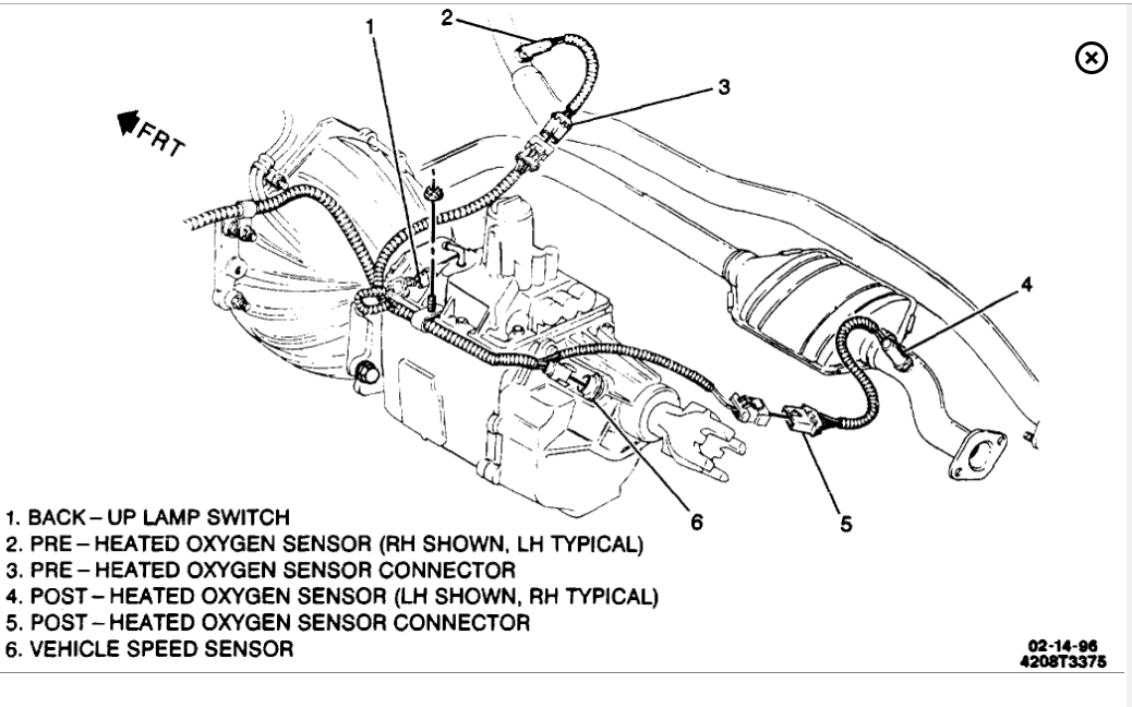 The service manual for my 1996 GMC Sierra tells me that my truck has four oxygen sensors. They are designated: Bank 1 Sensor 1, Bank 1 Sensor 2, Bank 1 Sensor 3, and, Bank 2 Sensor 1. The manual does not clearly indicate the location of each of these sensors. A GMC technician tells me that the term "Bank" refers to a particular side of the engine - Bank 1 refers to the side with cylinder number 1, the driver's side (as the plug wires are numbered 1,3,5,7). You'd think it would be easy to deduce the placement of each oxygen sensor. Here's the problem: Only one oxygen sensor lies beneath Bank 1. The other three are under Bank 2, two in front and one behind the catalytic converter. My information seems to be contradictory. Error code P0153 tells me I need to replace Bank 2 Sensor 1. Can you verify its location?