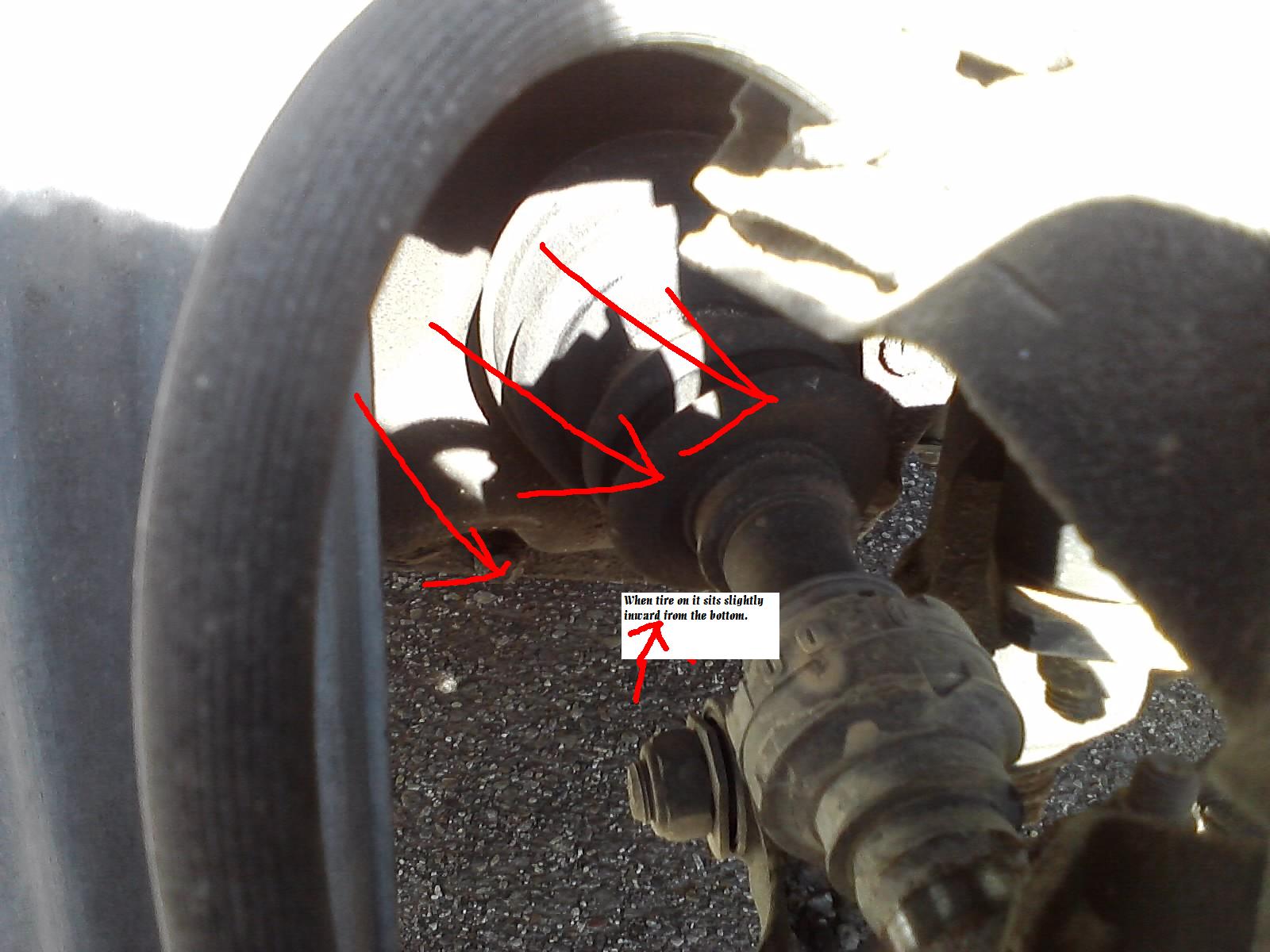 Here is a link to a forum i posted on to help you more thoroughly answer my question. http://forums.nicoclub.com/96-maxima-suspension-steering-question-pix-included-t548991.html There are several pictures included. IF this is not possible, then i will also attach photos to this document. It seems as tho the strut/Spring Assembly may be bent, the rubber seal ontop was at least knocked out of place. The lower ball joint looks bent/loose and i believe this would effect the steering knuckle as well. Which leads me on to the second problem, when the tire was on it sat at an angle, almost diagonally. It pivoted from the bottom in towards the car. CV joint? Idk too much about steering components, any help would be uch appreciated. Thankyou.