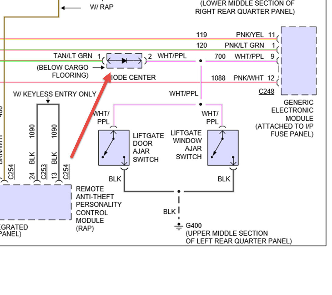 I have a 1996 Taurus wagon. My rear ( at the hatch ) power door lock switch quit working. Both front door switches unlock & lock all the doors including the rear hatch. I have checked the switch at the rear with a digital volt meter and it seems to be working. There is a diode some where in the circuit per the wiring diagram that I have, for just the rear switch. Not sure if that could be causing my problem but I don't know where it is in the harness so I can check it.