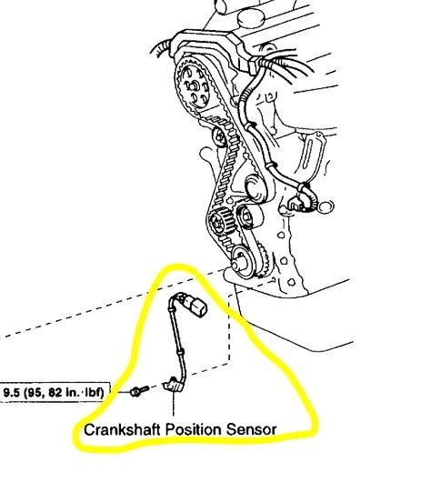 I checked behind the crankshaft pulley but there's no sensor. Now I'm really lost. That was the last to blame but this Rav 4 model doesn't have one.