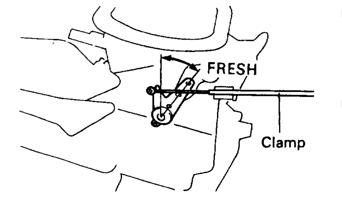 Set the air inlet damper on "fresh" position, install the control cable and lock the clamp.