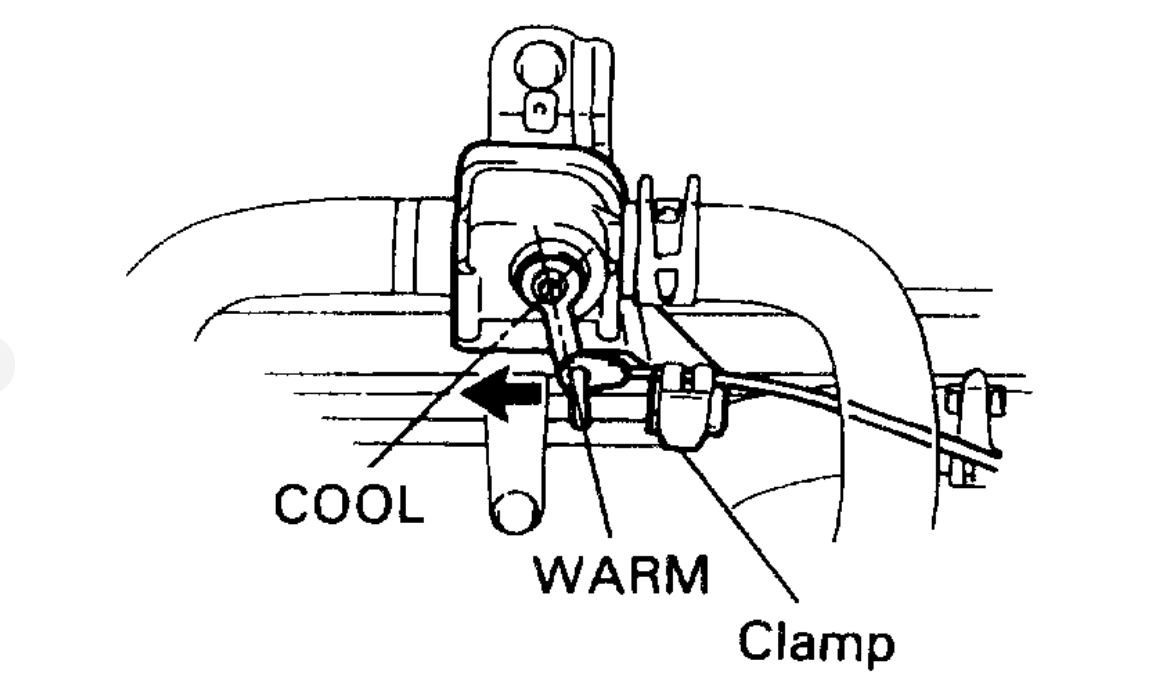 Set the air mix damper on "warm" position, install the control cable and lock the clamp.