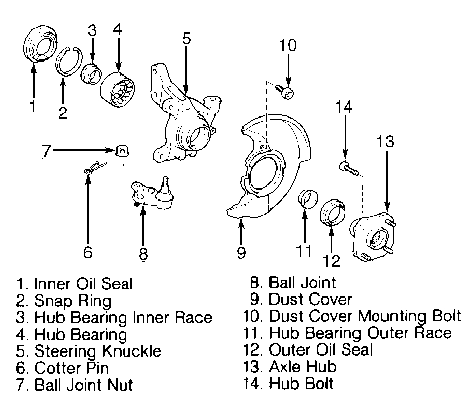 hub bearing outer race from axle hub. Remove outer oil seal from steering knuckle.