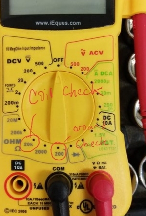 I'm not that familiar with using a voltage meter so I've attached a picture of my meter. You'll see that there are 5 different options in the Ohm section and depending on which setting I choose I get a different reading for each. Are you able to tell me which setting I should be on for each of the 2 readings you wanted me to take? Also, the readings don't appear to static. They seem to always be changing. Is this to be expected?