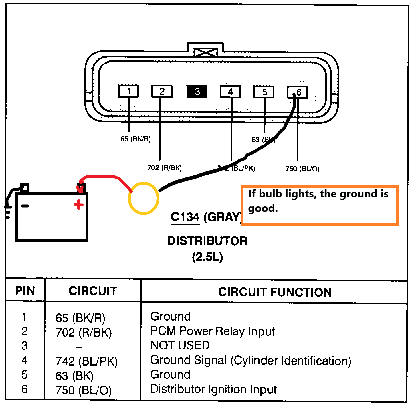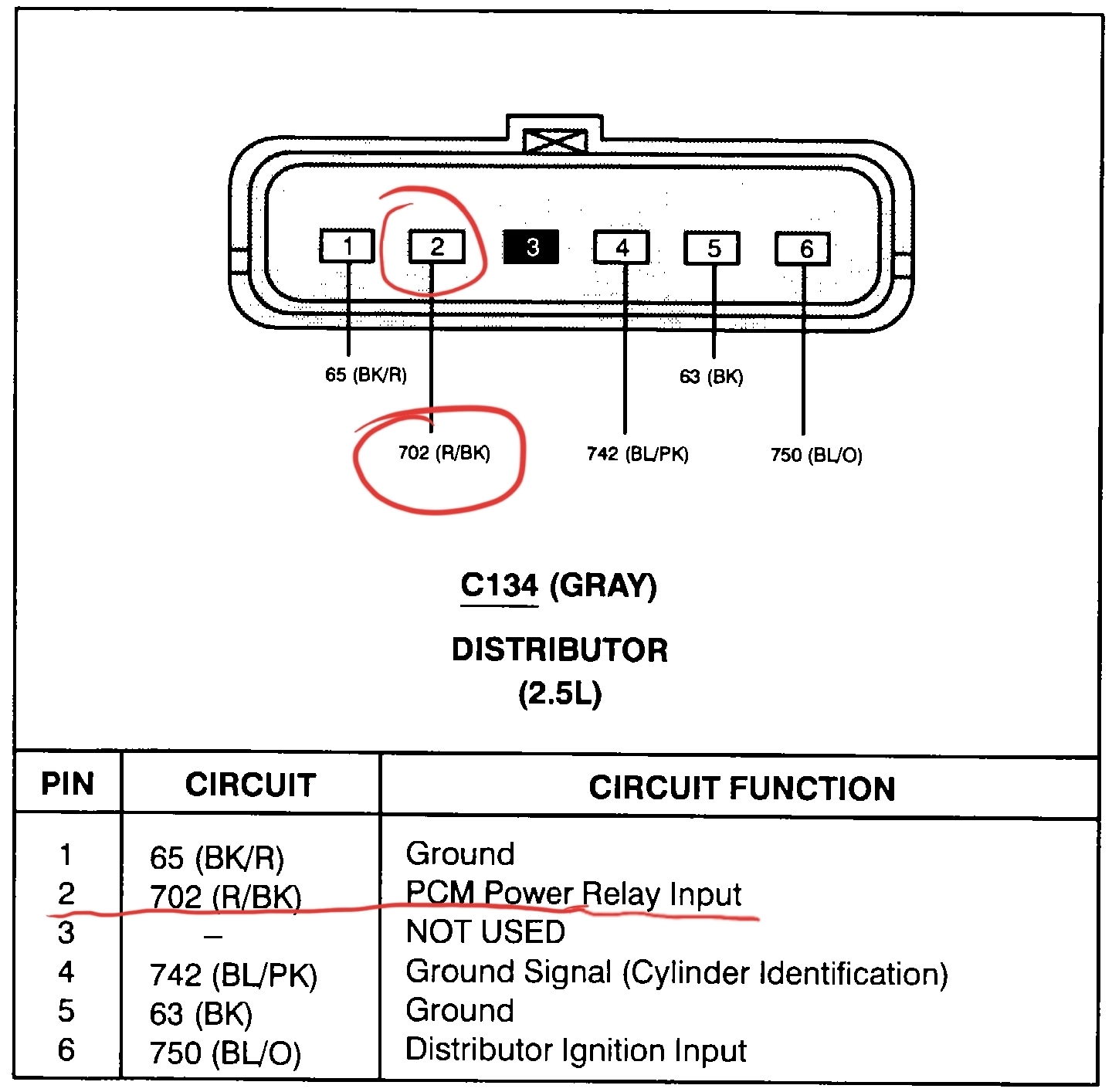 Also, when I confirmed power to the coil I checked for power on the 3 pin connector, not this 6 pin connector. Does that mean I should check for power on pin 6 of the 6 pin connector?