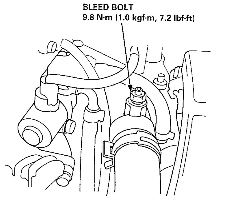 Loosen bleed bolt and fill radiator to base of filler neck.