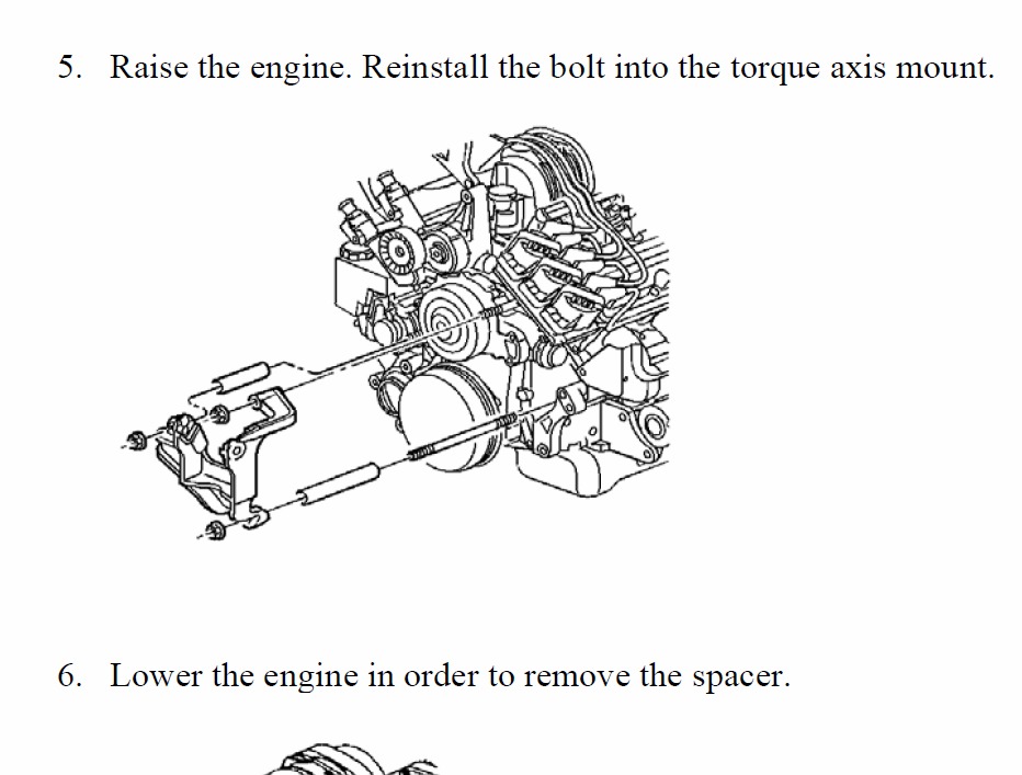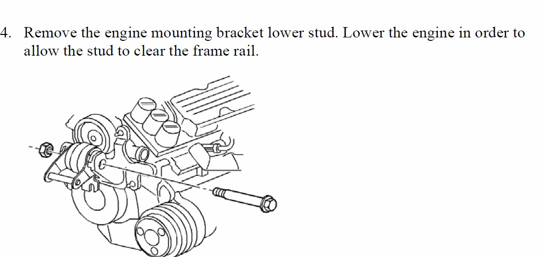 Remove the torque axis engine mount bolt at the engine mounting bracket.