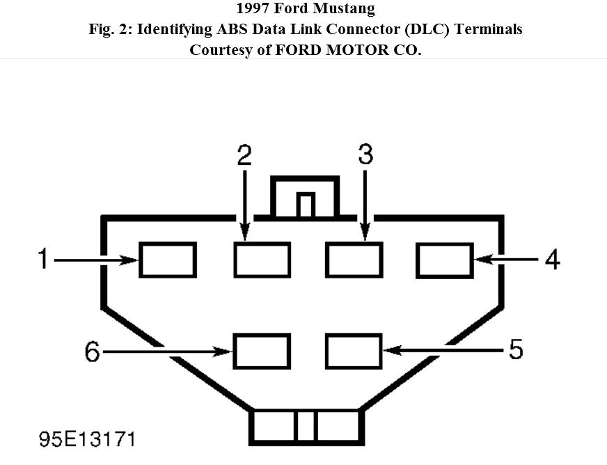 1. Turn ignition off. Locate ABS Data Link Connector (DLC) on engine compartment power distribution box. Connect a jumper wire between terminals No. 2 (Orange/White wire) and No. 6 (Black wire) at ABS DLC. See Fig. 2.