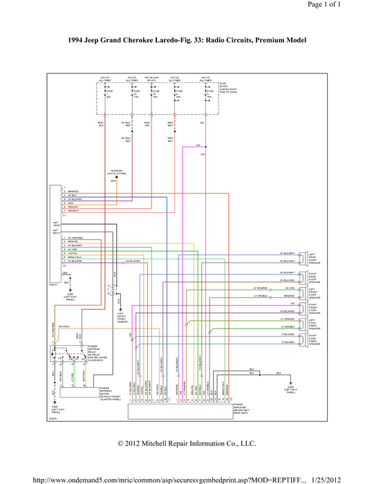In the mean time I am trying to get the speaker wires hooked up on the radio and It seems like none of them work. Do you have a wiring diagram for the stock wiring? 94 jeep grand cherokee. Thanks