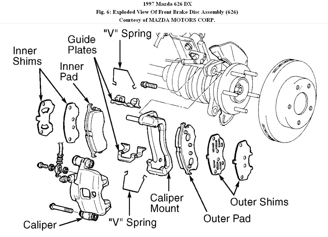 2. Remove pads, shims, guide plates or pad guides and "V" springs.