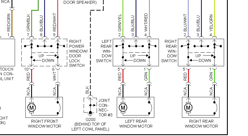 At the moment, I think the problem is the master switch? Check the hinge side of rear door, wiring harness. Black wire with blue tracer is voltage for power window, hot/voltage with the key on. Note diagram below. At the rear window switch, the wires on either side of the wire just mentioned are grounds, one ground for up, the other ground for down.