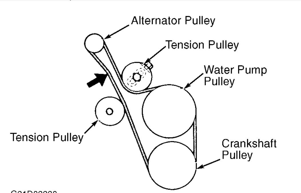 Release the tightening bolt of the tensioner pulley and loosen the adjusting nut to slacken the belt for removal.
