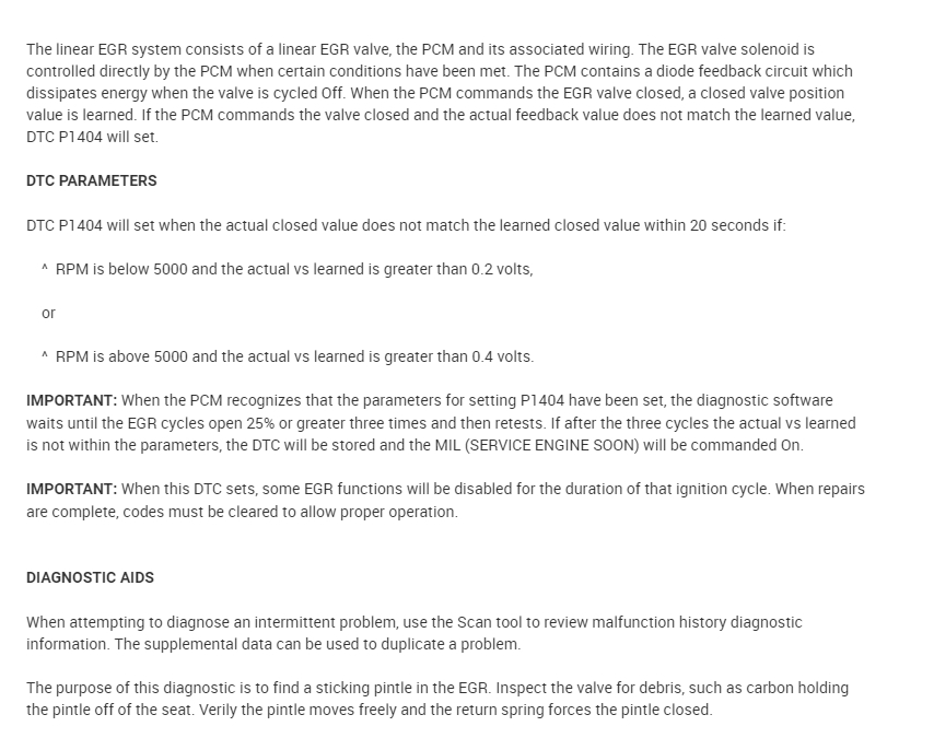 Which is a EGR code closed pintil or failed EGR. took out the EGR cleaned it with carbon cleaner spray while pressing pintil put it back in and deleted the code. drove a half a block p1404 code came right back. drove for a week with service engine light on. At the end of the week the check engine light turned off. That was a month ago two days ago check engine light came back on put new EGR in drove a half a block light came back. if you can tell me what's the next step to fixing this problem, please let me know.