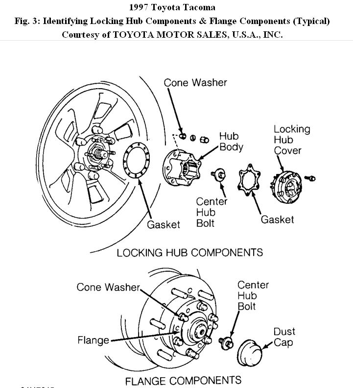 2. Place locking hub in FREE position. Remove bolts, locking