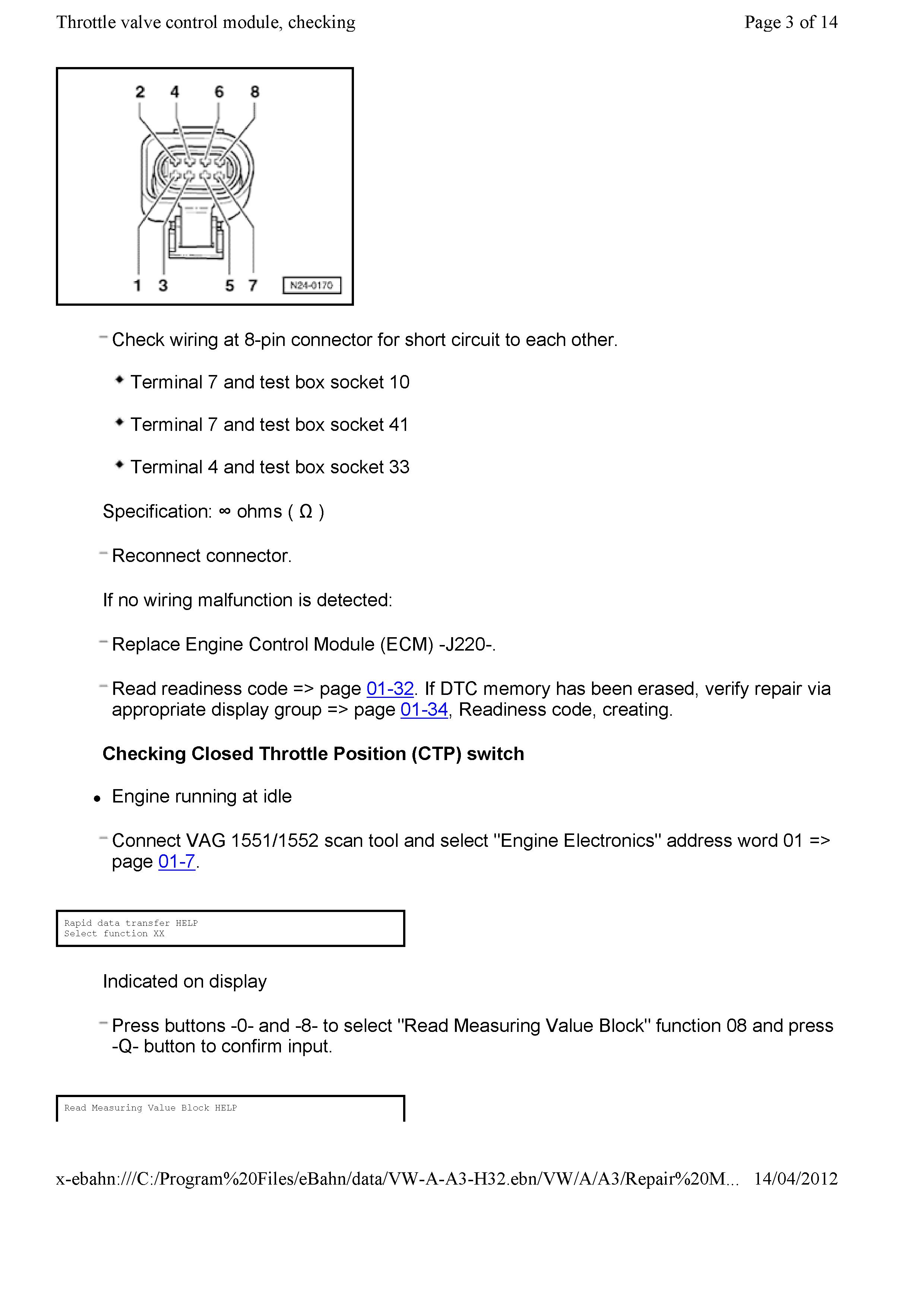 If adaptation does not take, or errors persist, check wiring... replace throttle body if no faults are found.