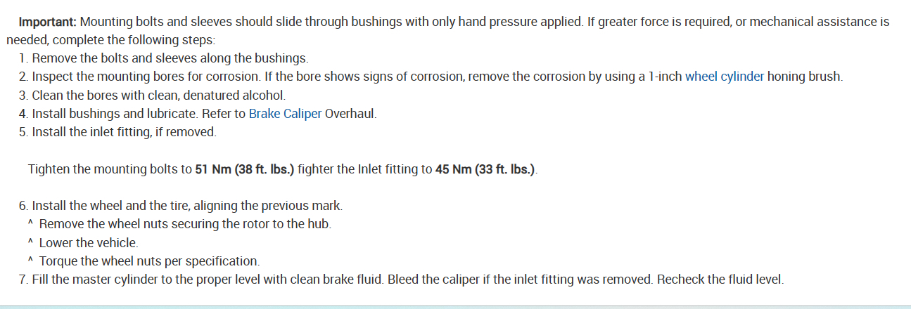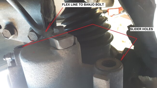 Today, I was out working on the car and managed to understand the caliper "problem "well enough to plan my next move-- to buy a 9mm / 3/8-inch hex socket wrench to remove the caliper slider bolts that will permit removal of the caliper from the caliper bracket. It's all downhill (in a good sense) from there.