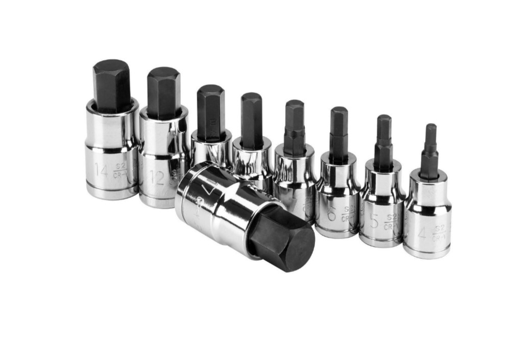 As you intend to work on this vehicle, I would suggest buying a hex bit set like those shown. They work far better with a torque wrench and enable you to use regular ratchets with them. You can get functional ones from places like Harbor Freight or Lowes stores for around $30.00 or you could go to Snap-On and get a 210EFTAMY set for around $300.00.