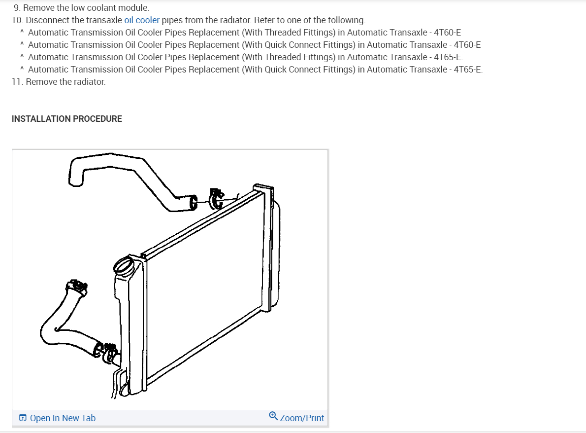 •Automatic Transmission Oil Cooler Pipes Replacement (With Quick Connect Fittings) in Automatic Transaxle - 4T65-E.