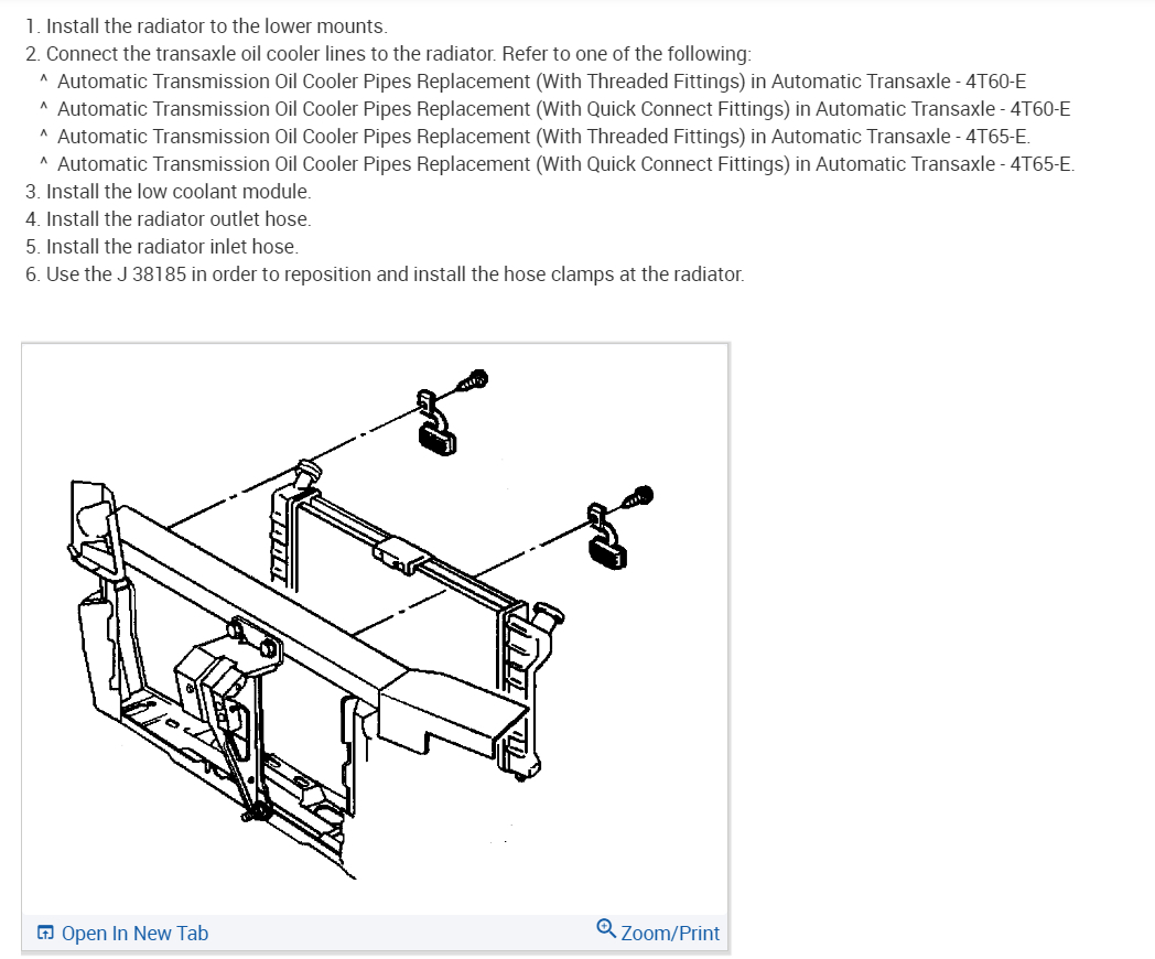 2.Connect the transaxle oil cooler lines to the radiator. Refer to one of the following:
