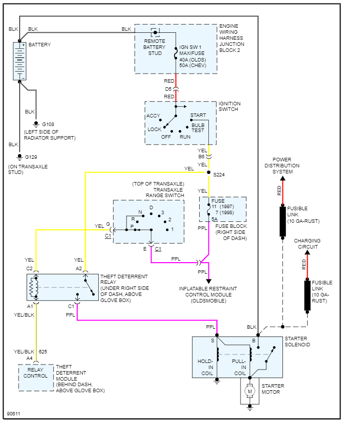 So, if you want to bypass it to start the engine, you need to jump pin E to pin G on C1 at the range switch.