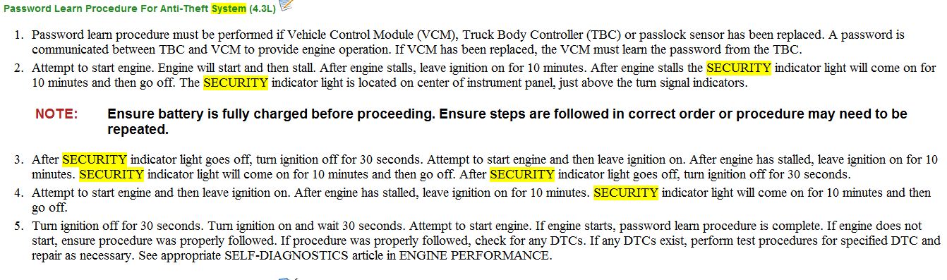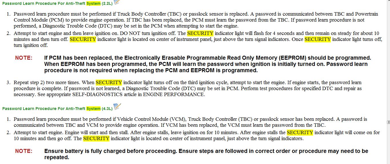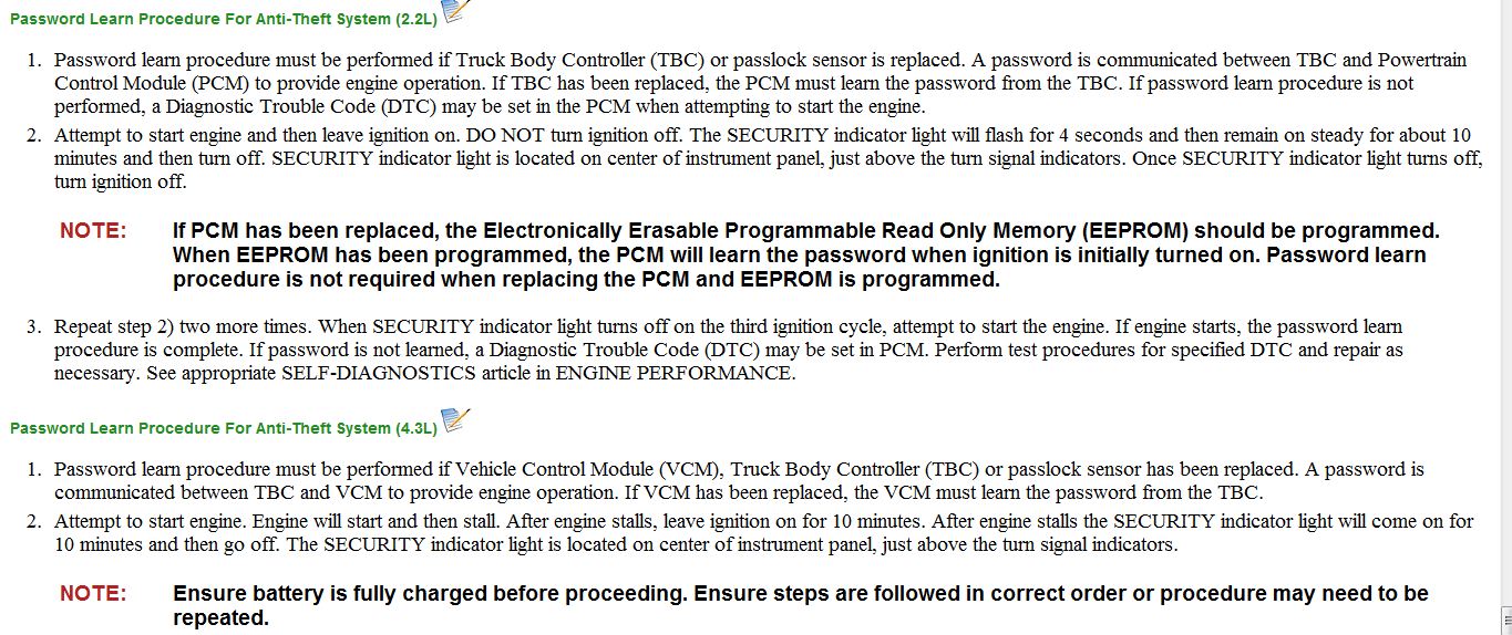 Slow cranking speed, extended cranking time, dtc p1626 technical service bulletin reference number(s): 87-65-21,â date of issue:â august 13, 1998 related ref number(s): 87-65-21 article beginning subject slow cranking speed, extended cranking time, dtc p1626 p1626, hard starting (reprogram pcm) condition some owners may comment about intermittent slow cranking speed and extended cranking time or may describe the condition as hard starting. Some owners may also comment about a vehicle security light that stays on through one key cycle after an extended crank event. Cause the pcm may be induced to synchronize incorrectly during key-up and cranking. This will cause subsequent ignition events to be mis-timed creating a situation where the starter is working against an ignition event. If the vehicle is keyed down and another starting attempt is made, the engine may start normally. Correction reprogram the pcm with the revised calibration that takes into account the above conditions. These calibrations are available on 1998 cd-rom 12 and later versions. Service procedure 1. If the customer has a concern with slow cranking or any of the other conditions noted above, connect a tech 2 scan tool and note the calibration id currently in the pcm. 2. Reprogram the pcm with the new calibration number listed in the table below. 3. Operate the vehicle and check for any additional slow cranking concerns. Models: 1998 chevrolet and gmc "s" models 1998 isuzu hombre with 2.2l engine (vin 4 - rpo ln2)4. If the vehicle still exhibits a slow cranking condition, use appropriate service manual diagnostics to correct the condition. Calibration numbers use the correct calibration from the list shown in fig. 1 . Fig. 1: calibration numbers table warranty information for vehicles repaired under warranty, use: warranty information labor operation description labor time j6355 prom-reprogramming 0.4 * diagnosis time may be claimed for 0.0 to 0.3 hours depending on actual time performing diagnosis.